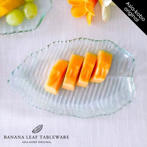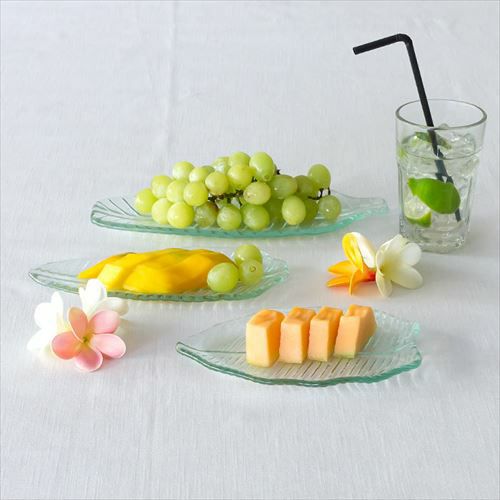 バナナリーフのガラスプレートはサイズ違いで3種類をご用意。 |