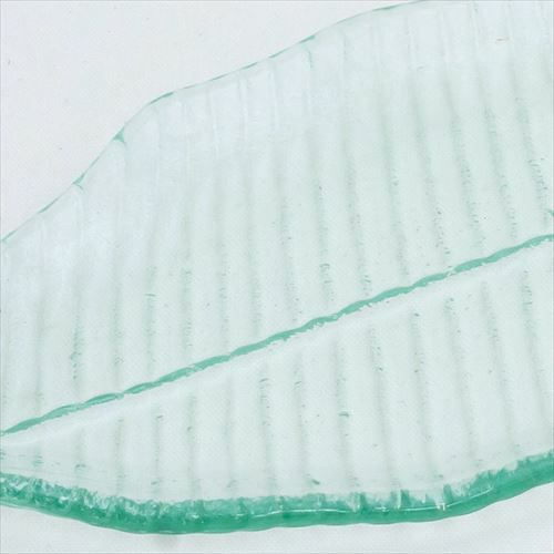 裏面にリーフの葉脈が凸凹加工で表現されており、表面はつるっとしております。フチは内側にカーブした造りです。 |