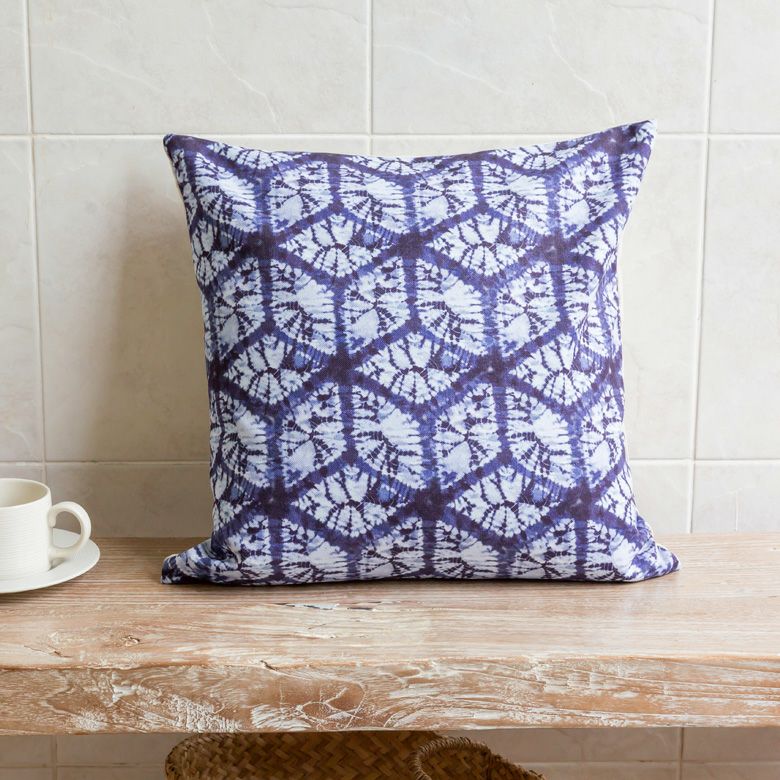 アジアンや和室にもマッチするおしゃれなクッションカバー 【メール便対応】クッションカバー 藍染め 絞り染め風 オーシャンブルー 45×45cm(66166)【アジアン雑貨のアジア工房本店】