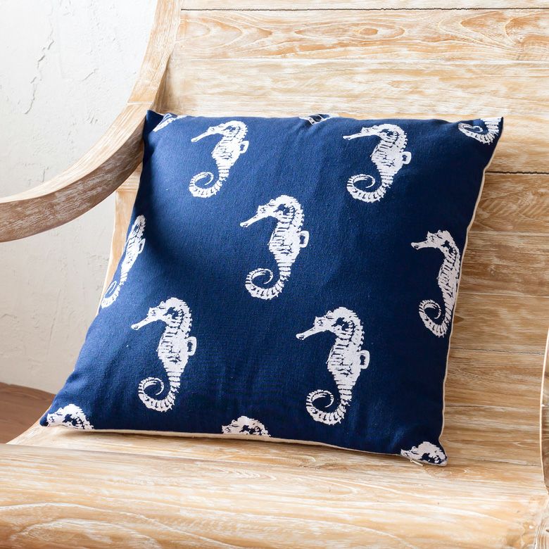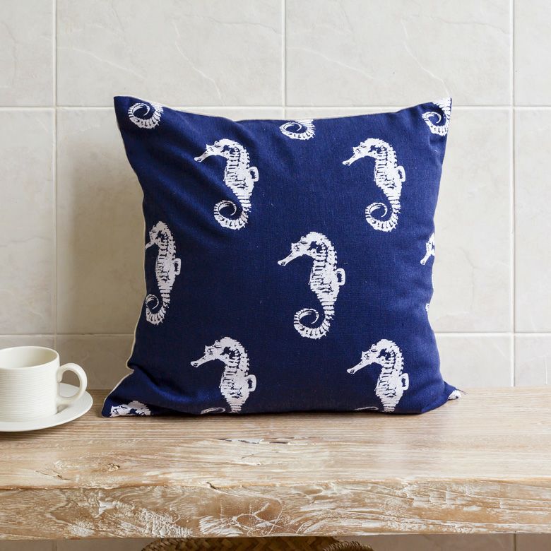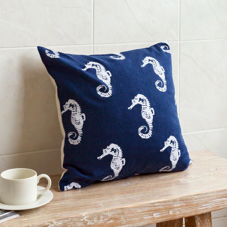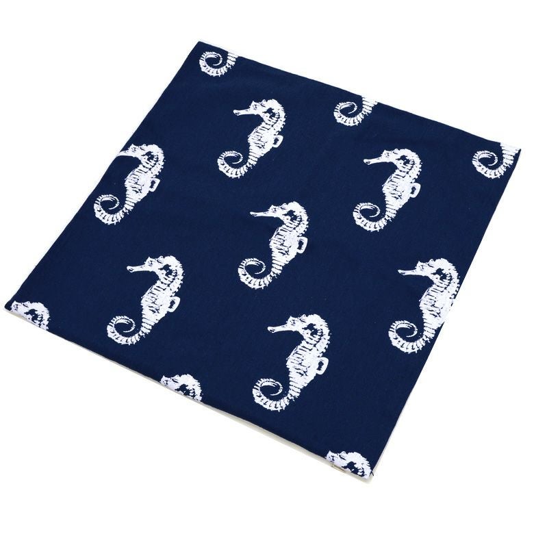 ネイビーブルーの生地に、ホワイトのタツノオトシゴ柄が