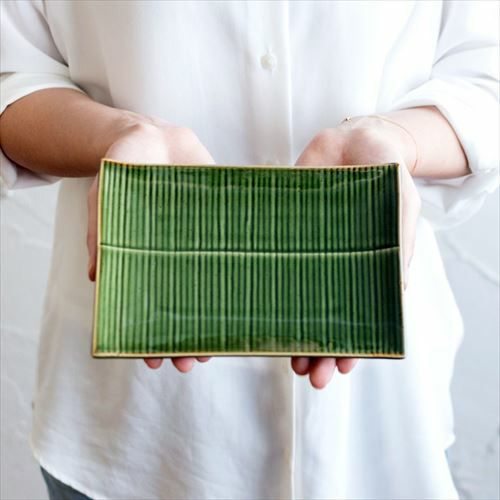 つるんとつやのある質感の渋めのグリーンのお皿は、