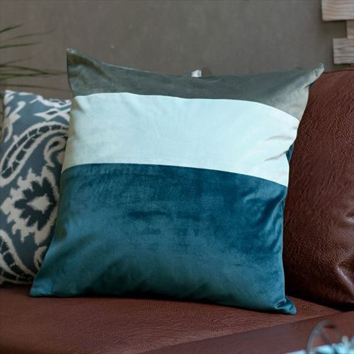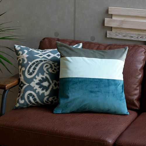 グレーとブルーのグラデーションが美しいクッションカバー。