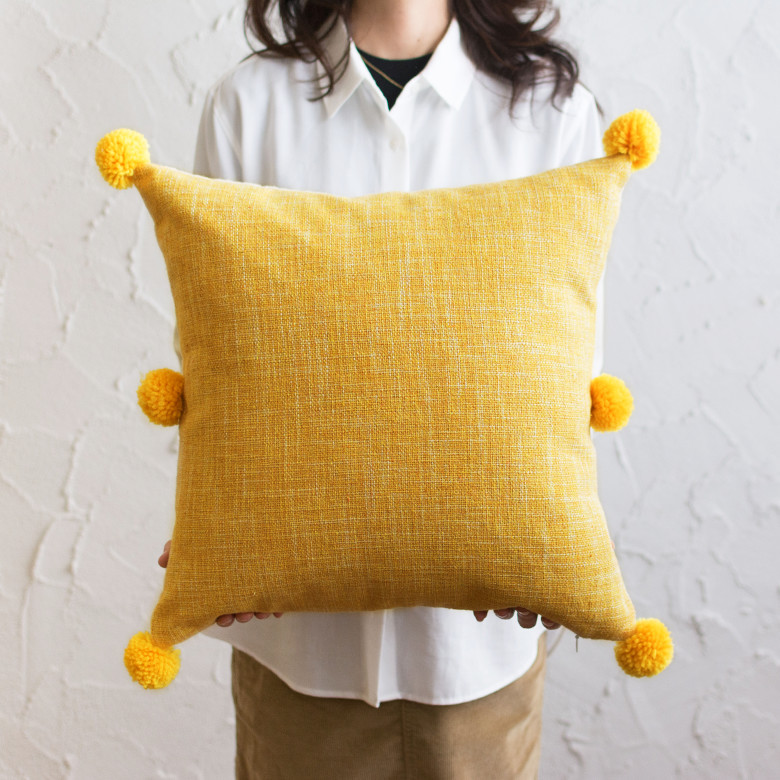 ![]() イエローのクッションにビタミンカラーのポンポンをON |