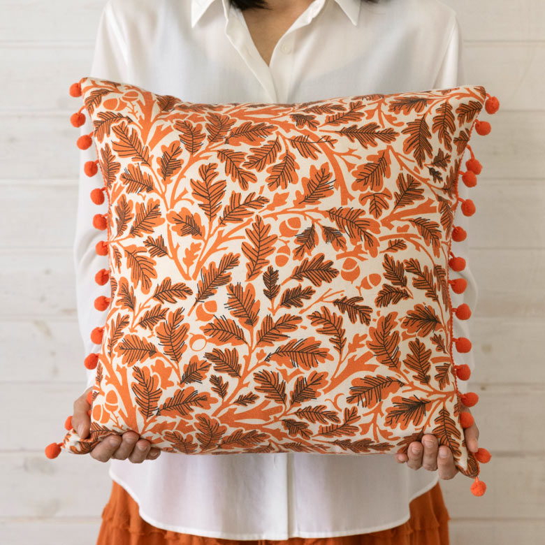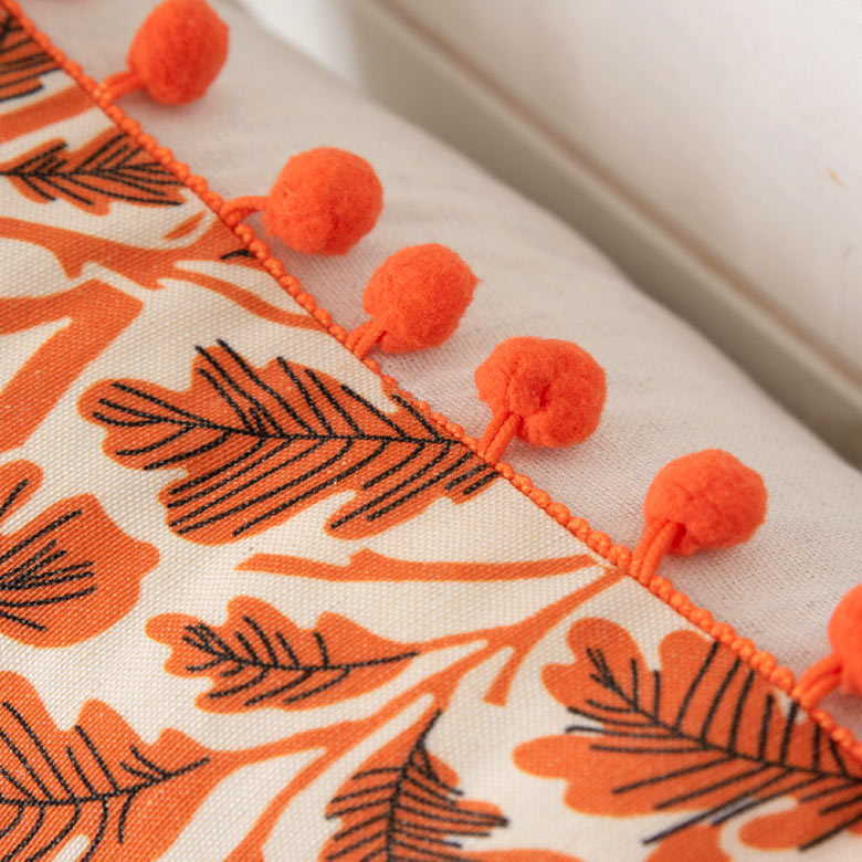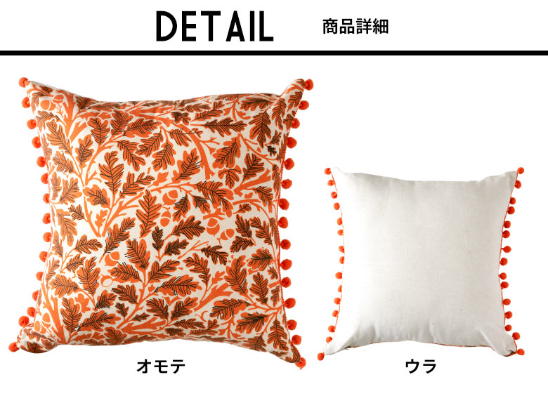 ポンポン付き リーフ柄 クッションカバー
