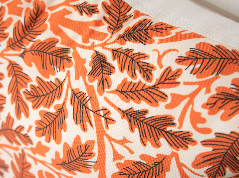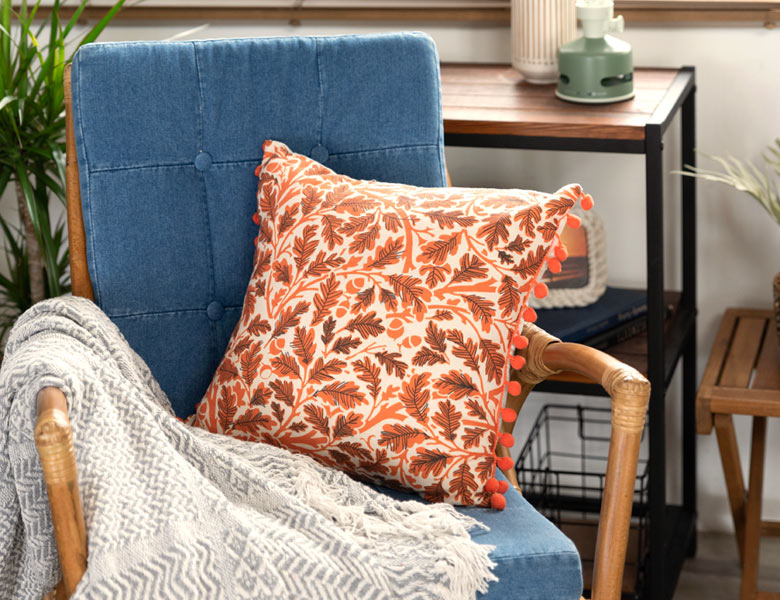 落ち着きのあるオレンジのクッションカバー。