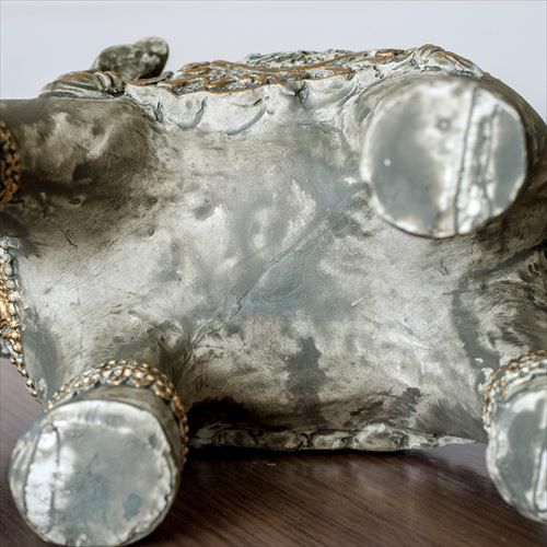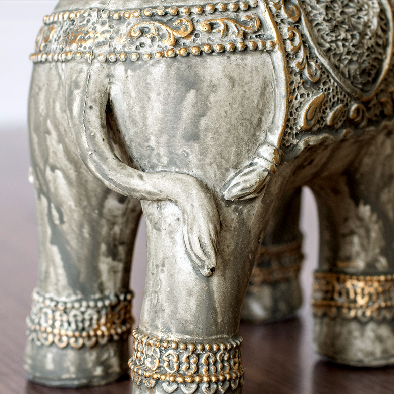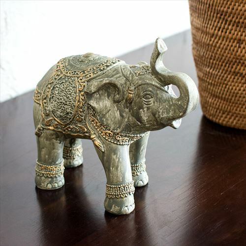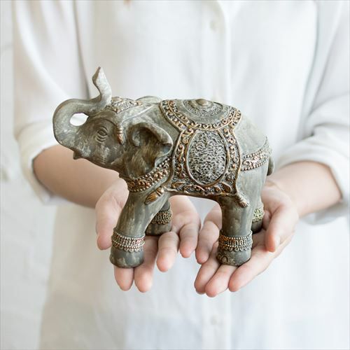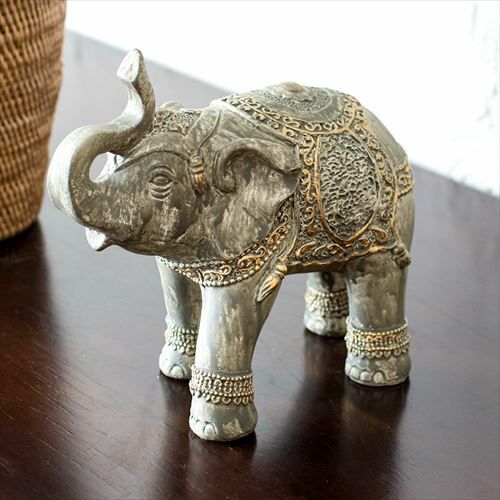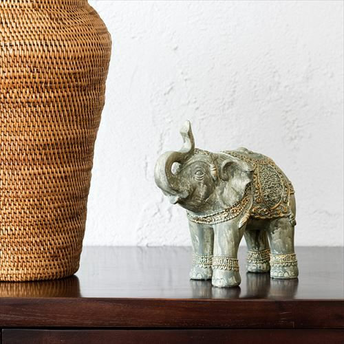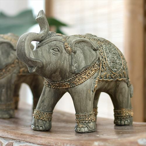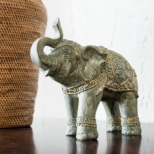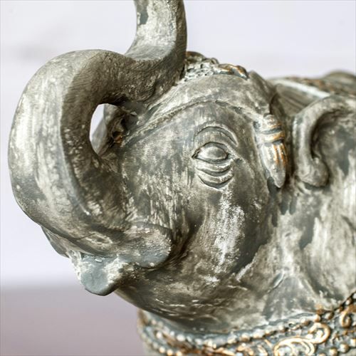 鼻を上げ、しっかりと直立した姿が凛々しい象のオブジェ。