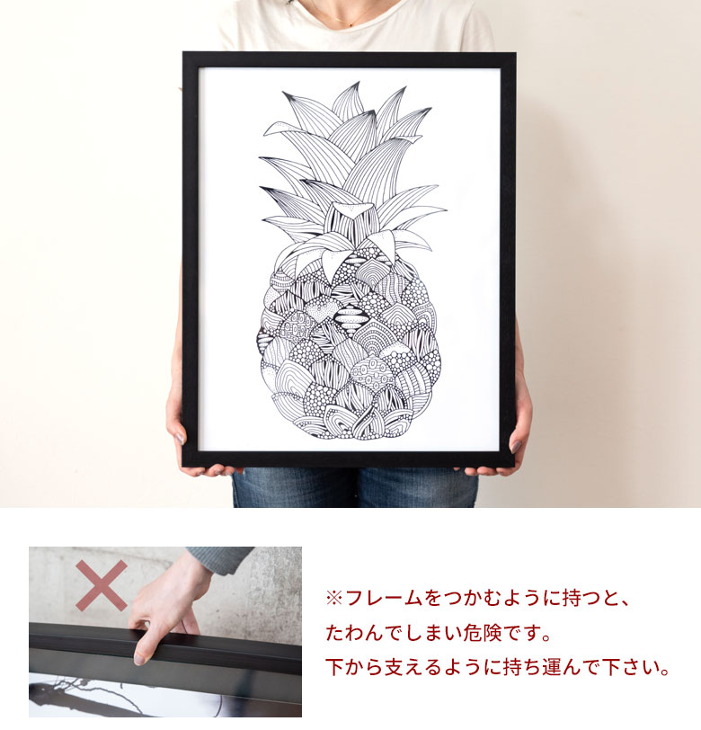 黒淵フレームとモノクロイラストの、シンプルなアートパネル。