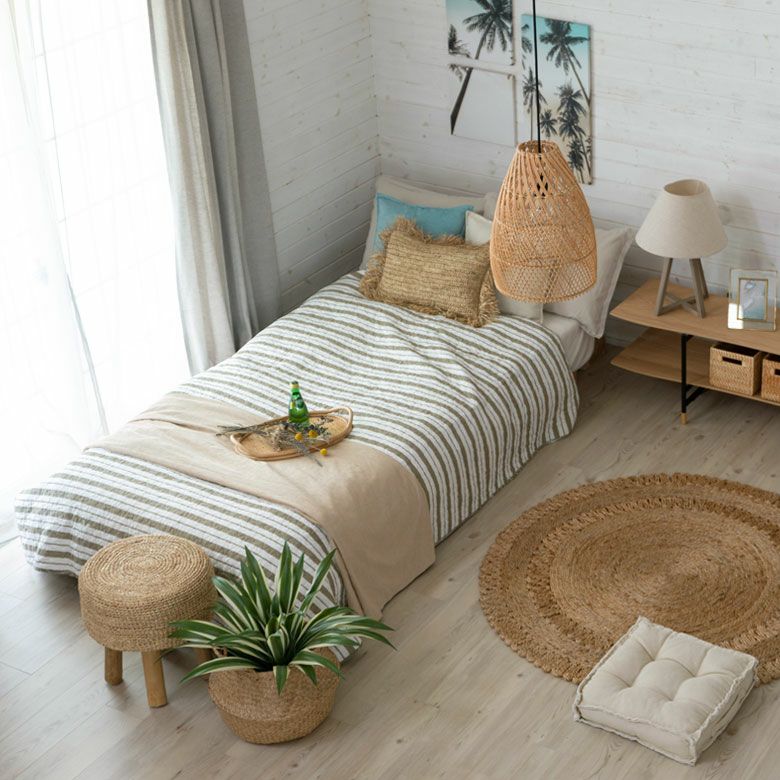ソファやベッドのカバーとして、見た目を変えてくれるだけでなく汚れ防止にも役立ちます。