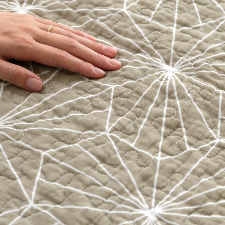 またキルティングで程よい厚みがあり、ラグやジョイントマットの上に敷いて使うことも。