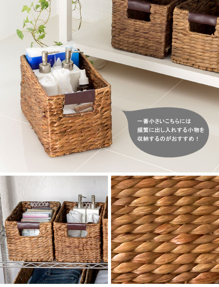 Sサイズは日用品のストックを収納したり、リビングの散らかる小物入れに。