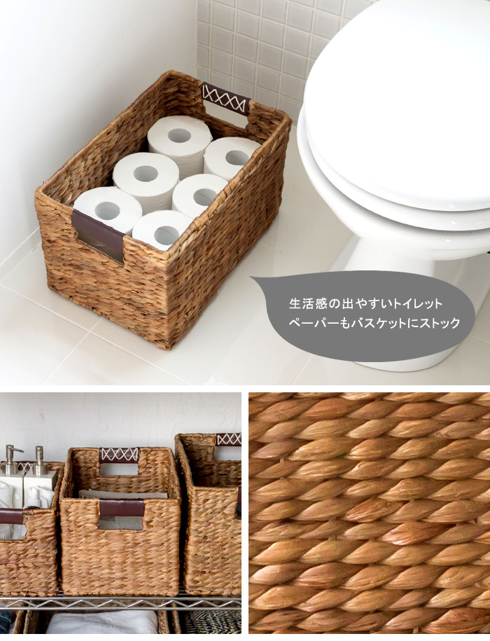 Mサイズはアイアンシェルフとの相性も◎家族の着替えを入れておく脱衣所かごとしても。