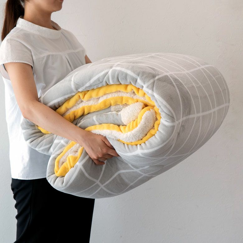 ふんわり、軽~い♪ フランネル生地で暖かいこたつ布団ですが、 ふんわりと軽やかで持ち運びもラクラク。 コンパクトに折り畳めて、圧縮袋に入れるとより省スペースで収納できます。 |