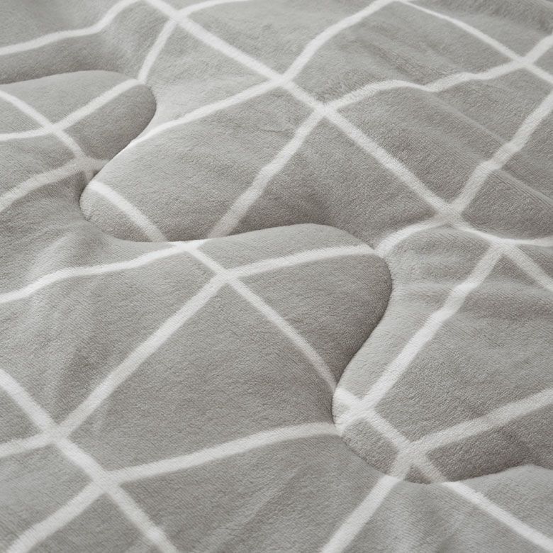 中綿の偏りを防ぐ 見た目も美しい大きな波模様のステッチが、 ボリューム感をつぶさずに中綿の偏りを防ぎます。 さらに、波型であることで布団が体に沿いやすく、 暖かさをしっかりキープ。 |