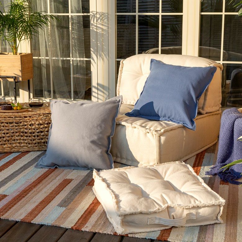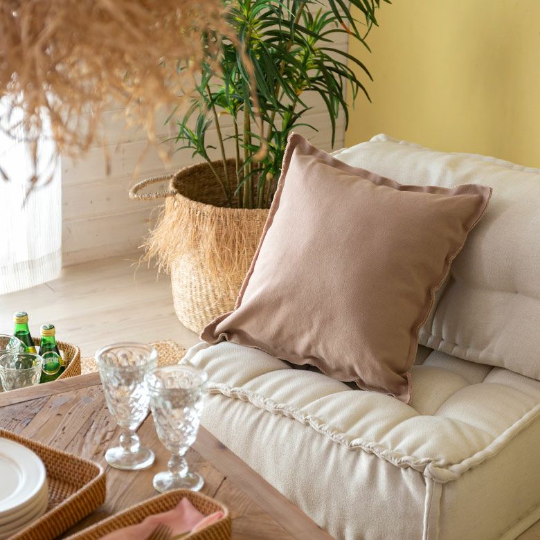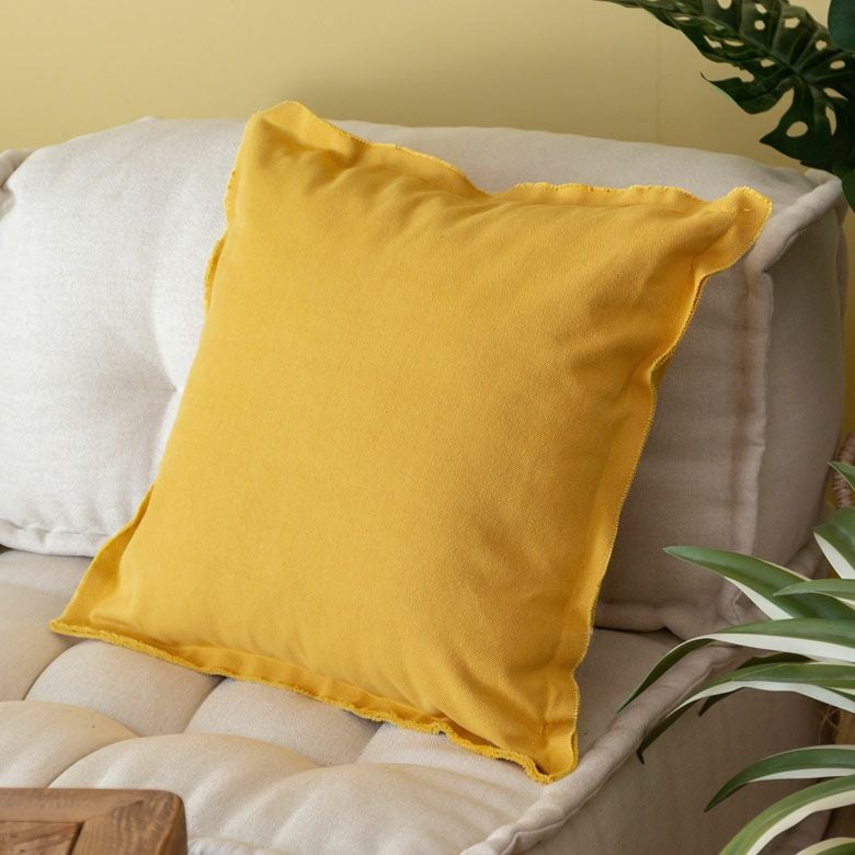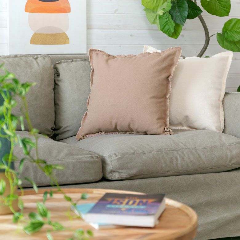 お部屋のインテリアに合わせやすい、シンプルなクッションカバー。