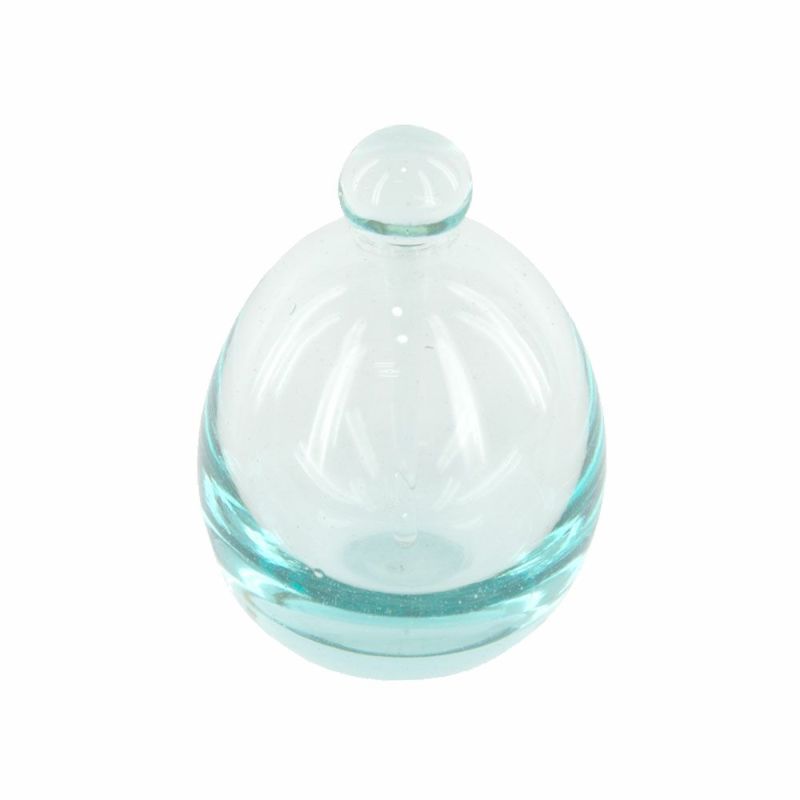 ブルーガラスが爽やかな、丸みのあるスパボトル。