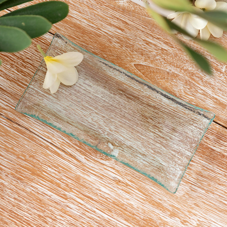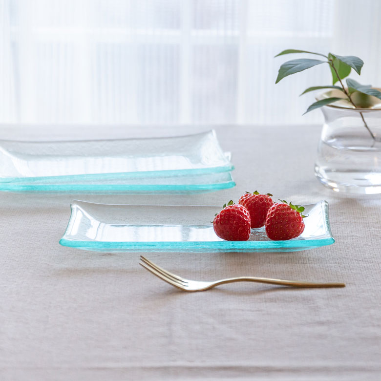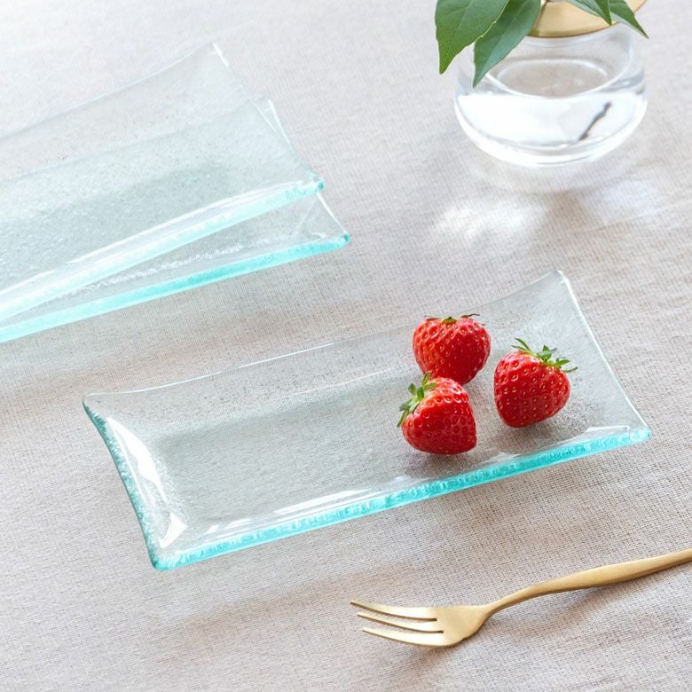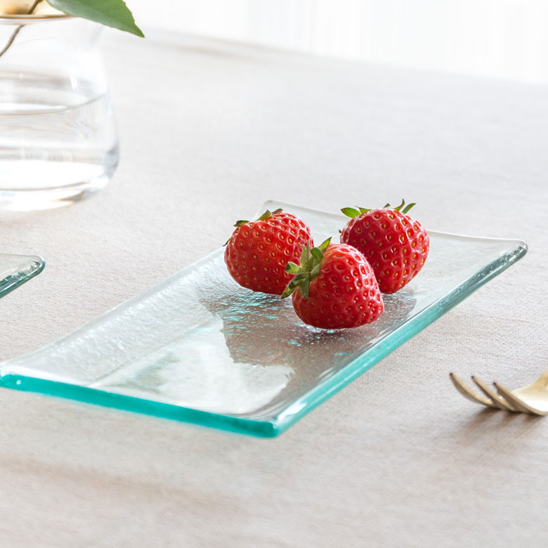 ぽってりと少し厚みのあるガラスのトレイ。