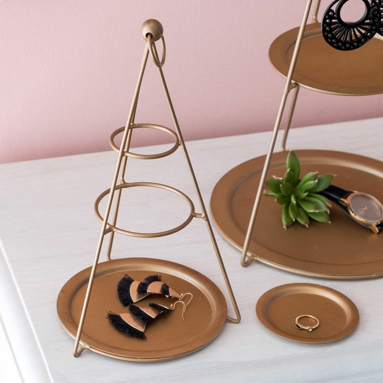 トレイが2つ付いたツリー型のディスプレイスタンド。
