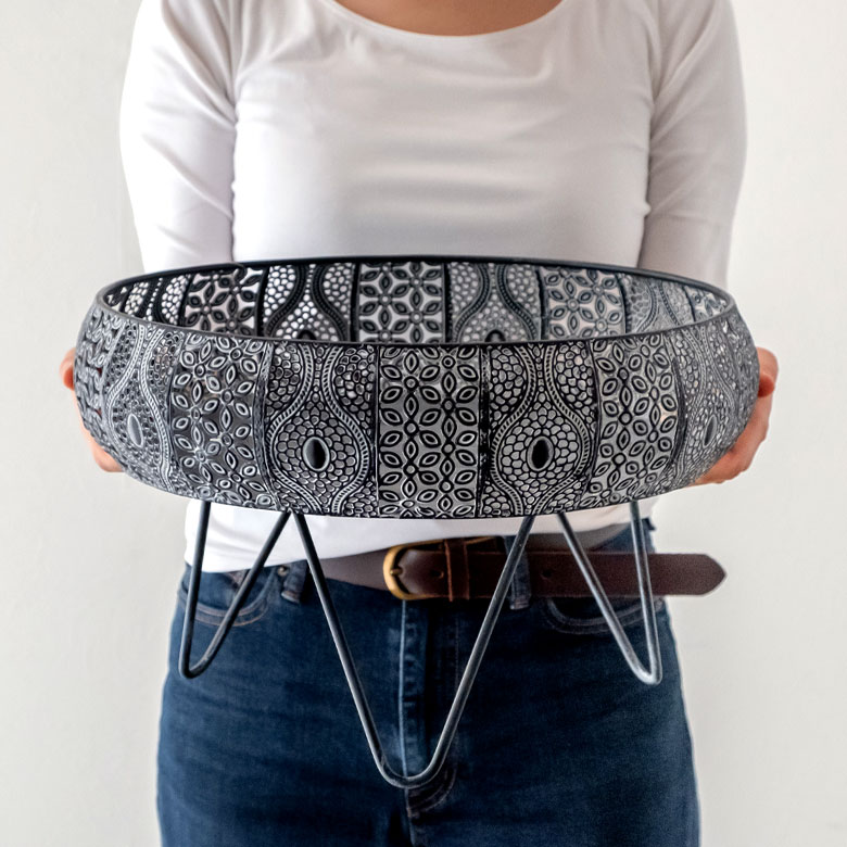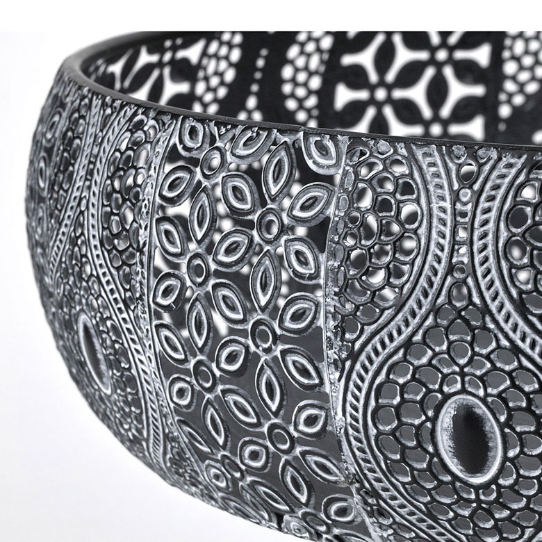 繊細な透かし彫りのアラベスク模様が美しいフラワーバスケット。
