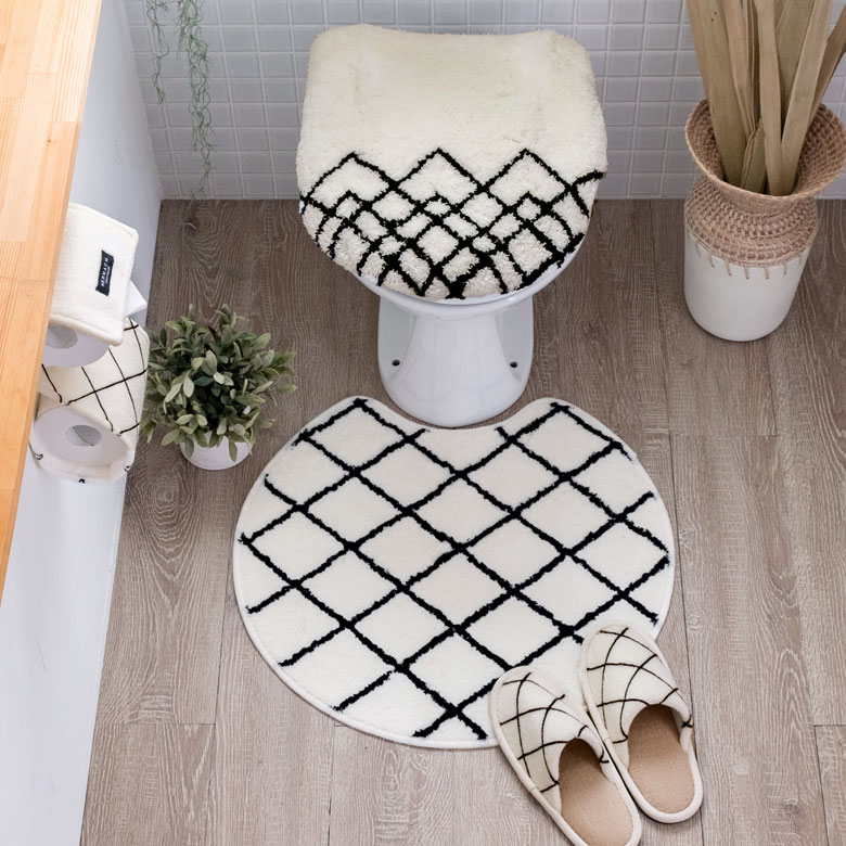 トイレ蓋カバー 蓋カバー かわいい インテリア サニタリー トイレカバー 便座カバー 洗浄便座用 網目模様 ホワイト [90260]【 フタカバー おしゃれ メッシュ シンプル モダン モノトーン ボヘミアン エスニック ナチュラル 北欧 洗濯可 トイレ トイレ用品】