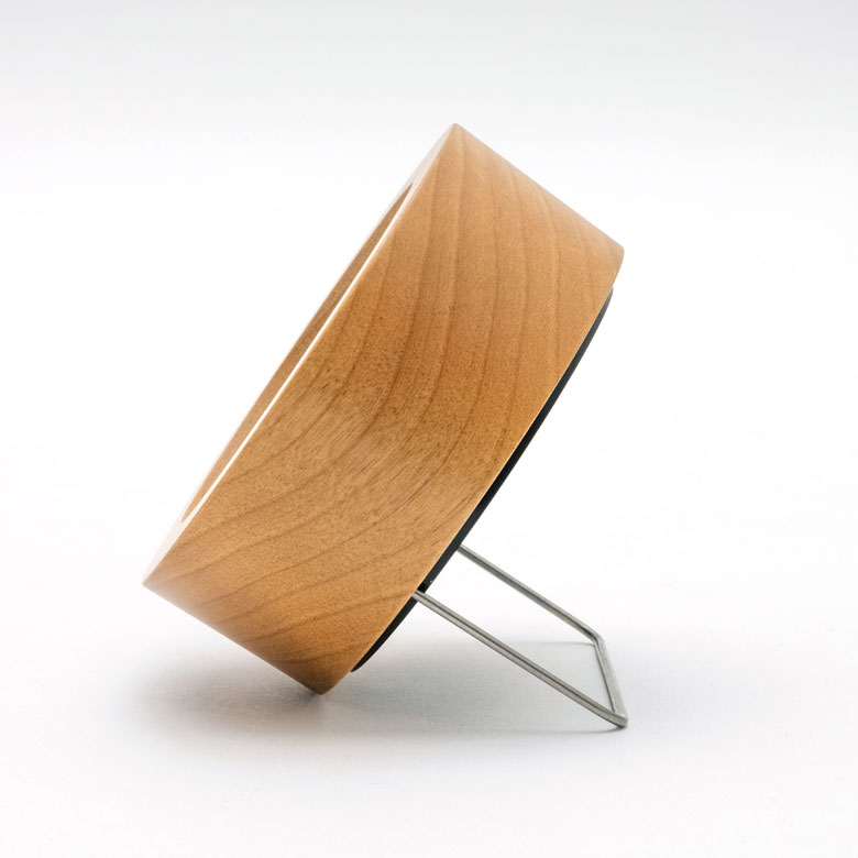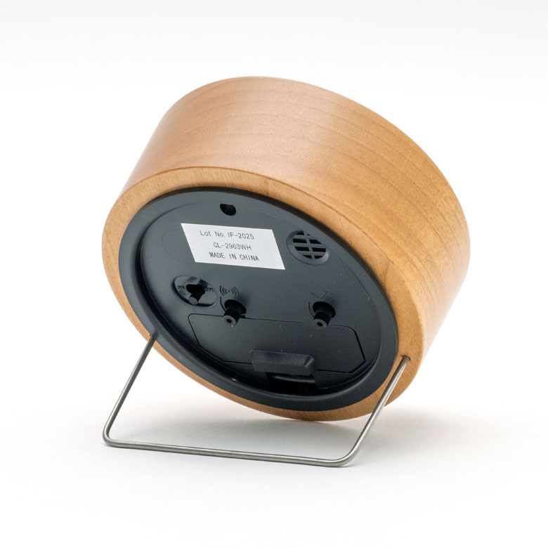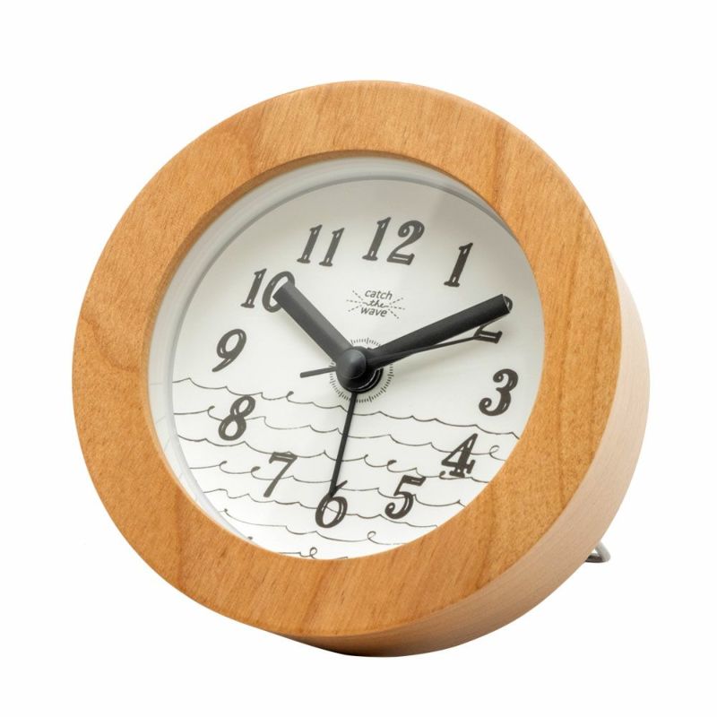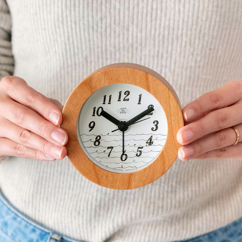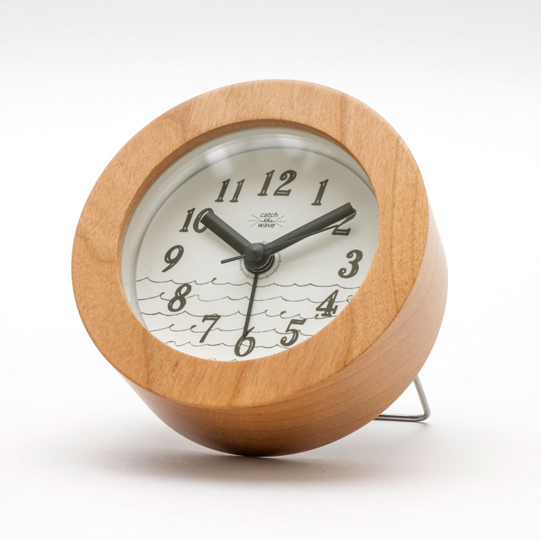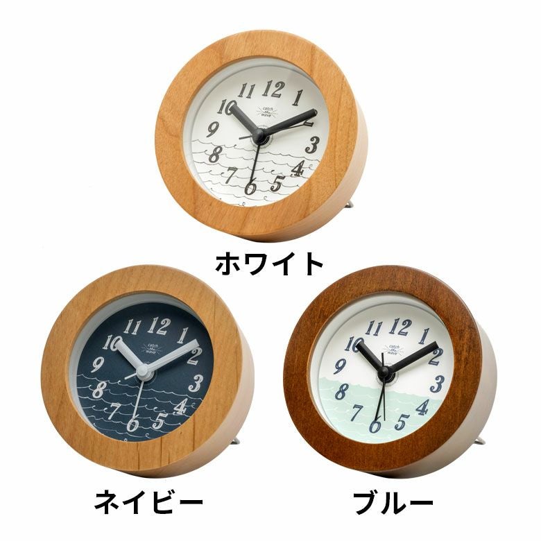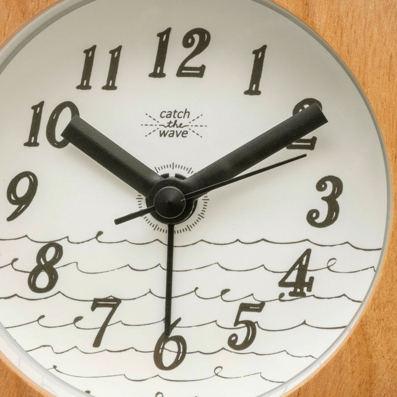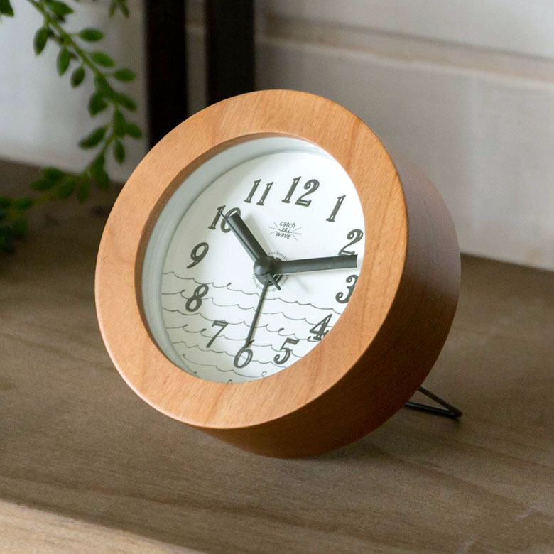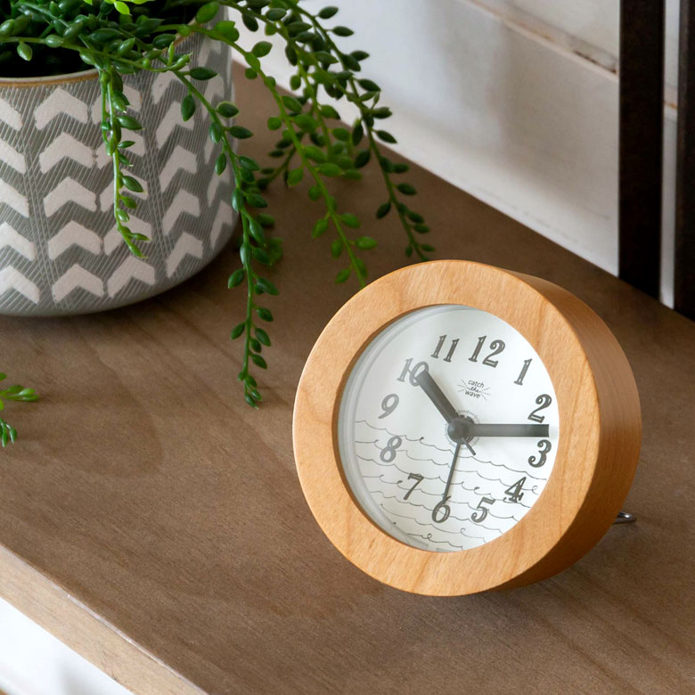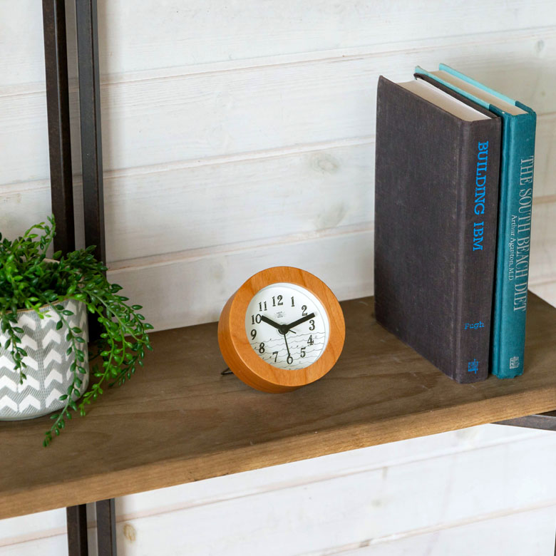 厚めの木製フレームとマリンテイストの文字盤がかわいい目覚まし時計。