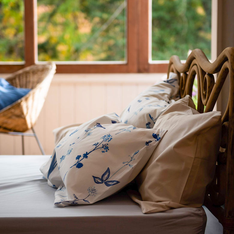 ボタニカルストライプのベッドリネン