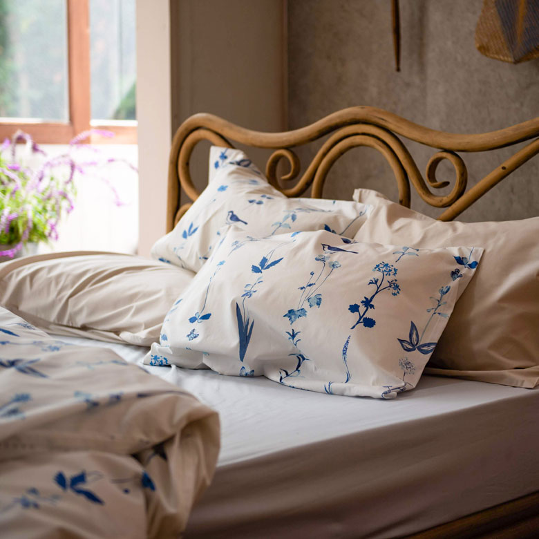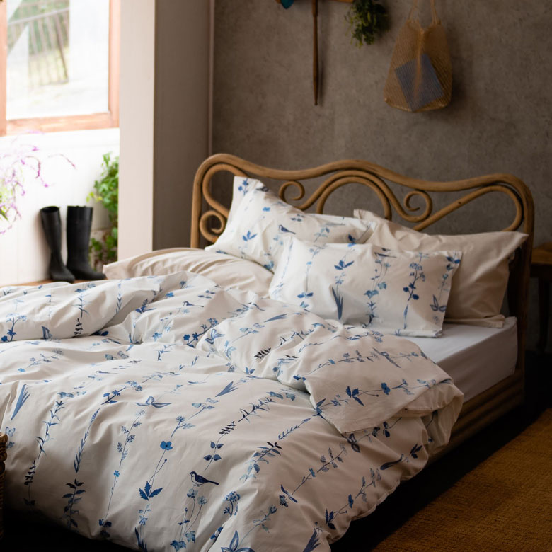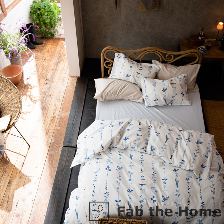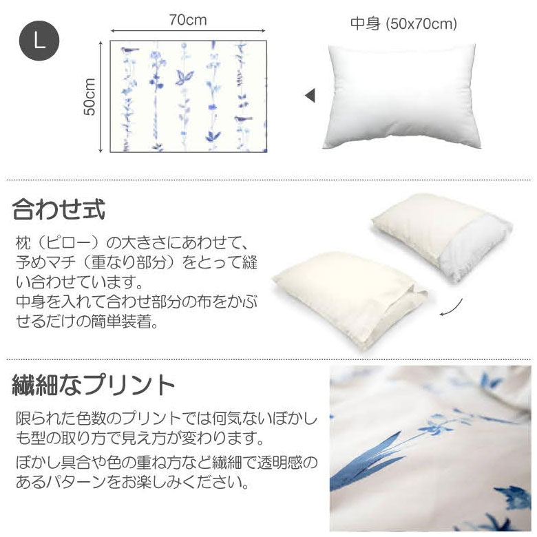 まくらカバー 柄付き 草花 ナチュラル 寝具 50×70cm用 【メール便対応】枕カバー ピローケース 綿 合わせ式 50×70 ボタニカル [90323]【 ベッドリネン 枕ケース 綿100% コットン ストライプ ライン 柄 花 フラワー 植物 小鳥 おしゃれ ホワイト ブルー ネイビー ライトブルー 水色 青 白 Fab the Home 】