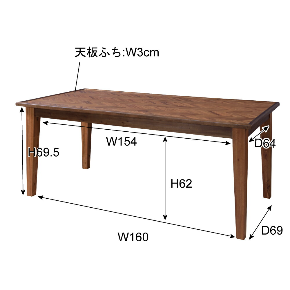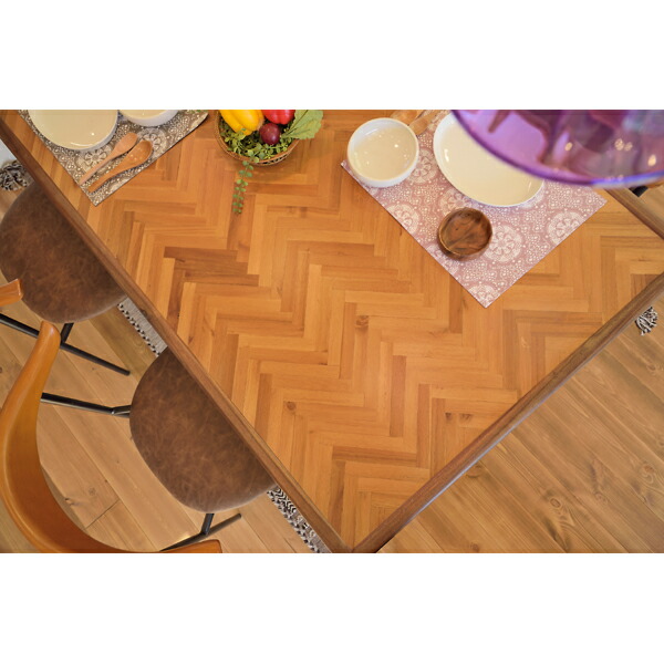 カフェテーブル ダイニングキッチン リビングテーブル おしゃれ ダイニングテーブル 6人掛け 幅180cm 天然木 ヘリンボーン柄 組立品 テーブル 食卓 食卓テーブル 木製 西海岸 北欧 おしゃれ ヴィンテージ 在宅勤務 [91260]