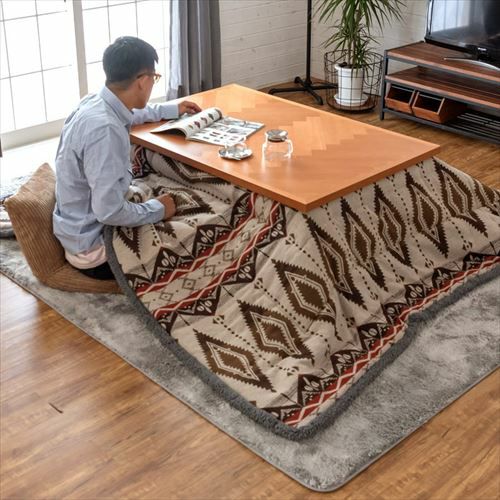 冬のお部屋の主役としてふさわしい、オルテガ調のこたつ布団。
