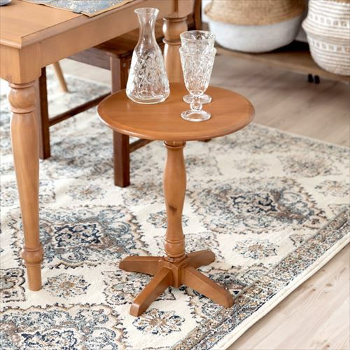 トラディショナルなデザインとパイン材の明るい色合いのサイドテーブル。