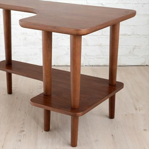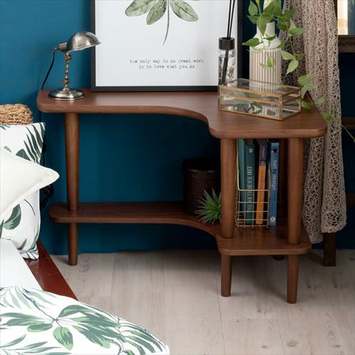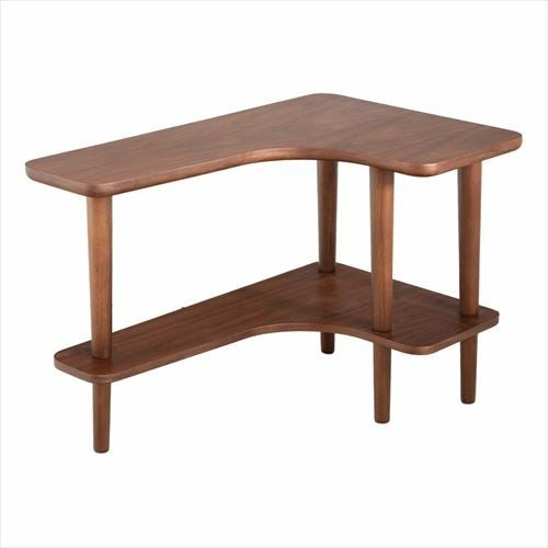 ソファサイドのコーナーに沿うように作られた形が特徴的なサイドテーブル。