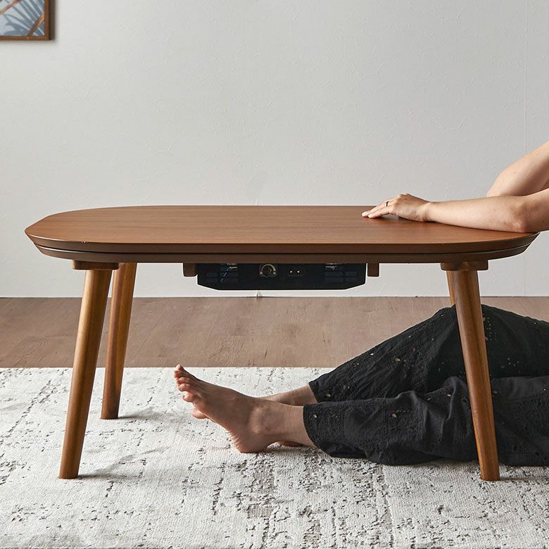丸みのあるデザインが可愛らしい、ウッド素材のこたつテーブル。