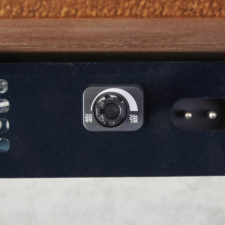 温度は調節つまみで弱から強まで調節可能。