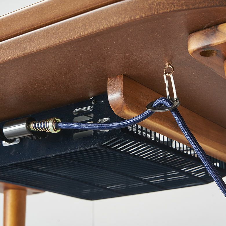 コードを引っ掛けられるパーツ付き。こたつの中でのコードの引っかかりを防ぎます。
