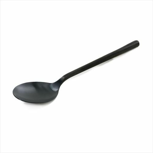 珍しいオールブラックのカトラリーは、平たいハンドルもスマートでクールな印象。
