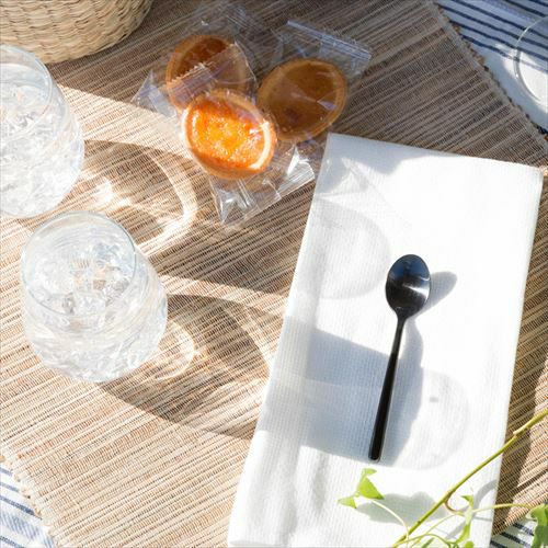 珍しいオールブラックのカトラリーは、平たいハンドルもスマートでクールな印象。
