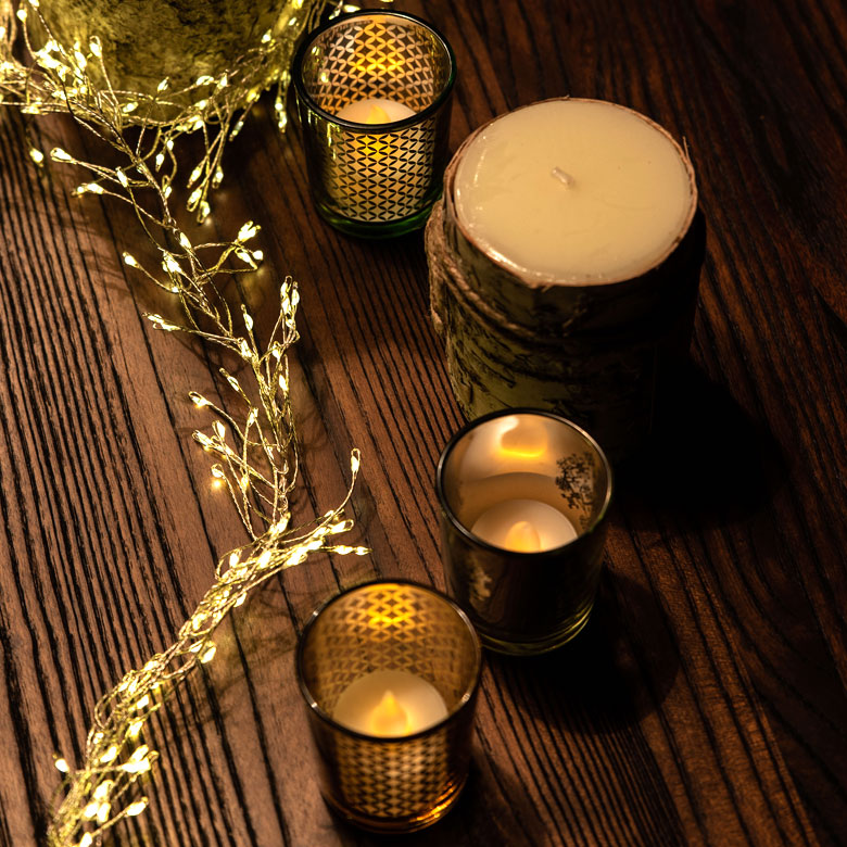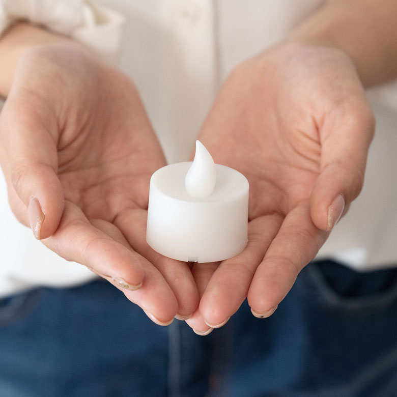 ティーライトキャンドルの形をした電池で点灯するライトです。