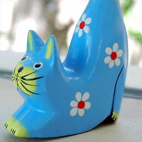 トラのようなしっぽが特徴的で、カラフルなバリネコのオブジェ。