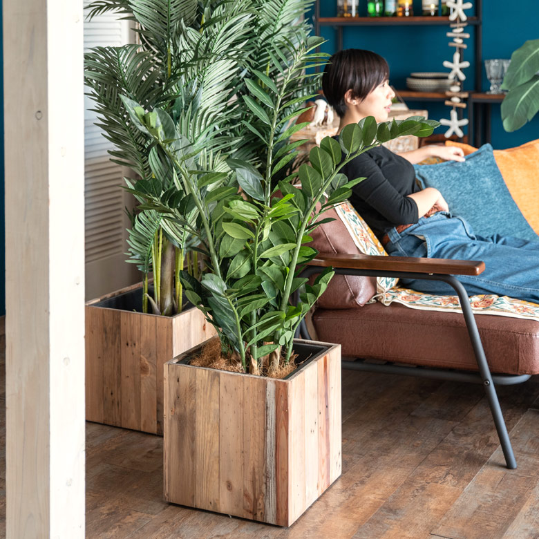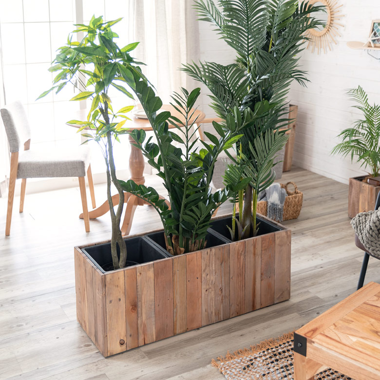 ▲お手入れ不要!グリーンインテリアを楽しめるフェイク観葉植物