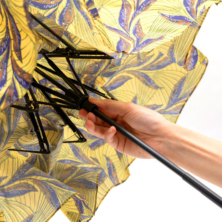 大きな柄と、鮮やかなカラーの傘は、晴れた日の春夏ファッションにもしっくりきます。