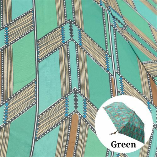 アフリカンテキスタイルをイメージして作られた生地が印象的な折り畳み傘。