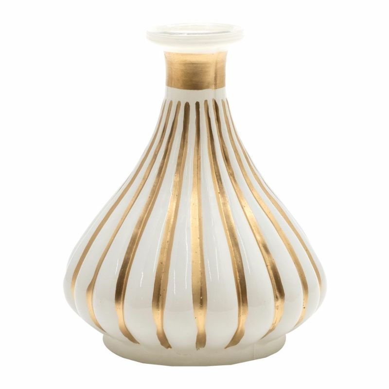 花びん 半透明 花器 壺型 金色 フラワーベース ガラス ミルクカラー ゴールド 花瓶 [94231]【 直径12cm 高さ14cm 模様入り 乳白色 おしゃれ アンティーク調 オブジェ 】