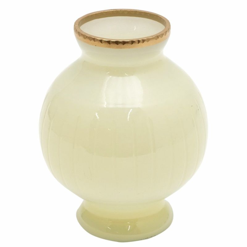 ミルクカラーのガラスと、丸いフォルムがかわいいフラワーベース。