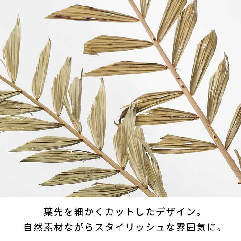 葉先を細かくカットしたデザインで、ナチュラルな素材ながらスタイリッシュな雰囲気に。