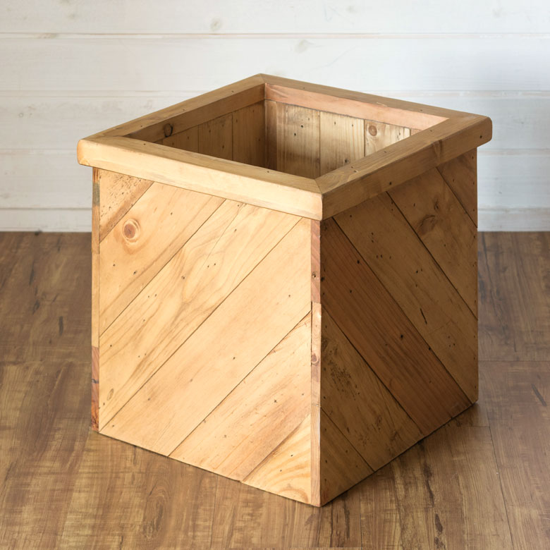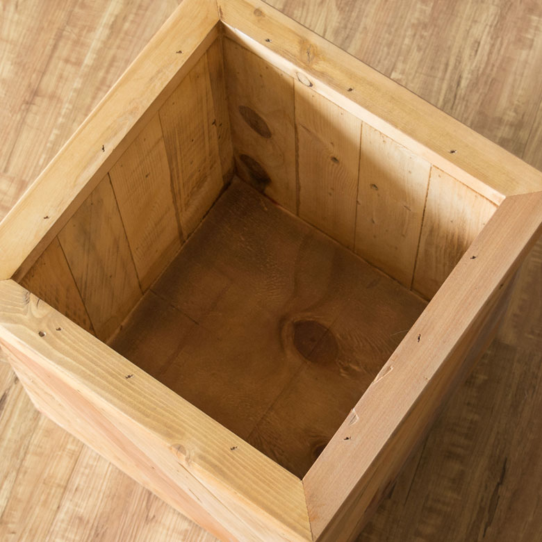 あえて釘跡や傷を残したヴィンテージ風のプランターカバーです。