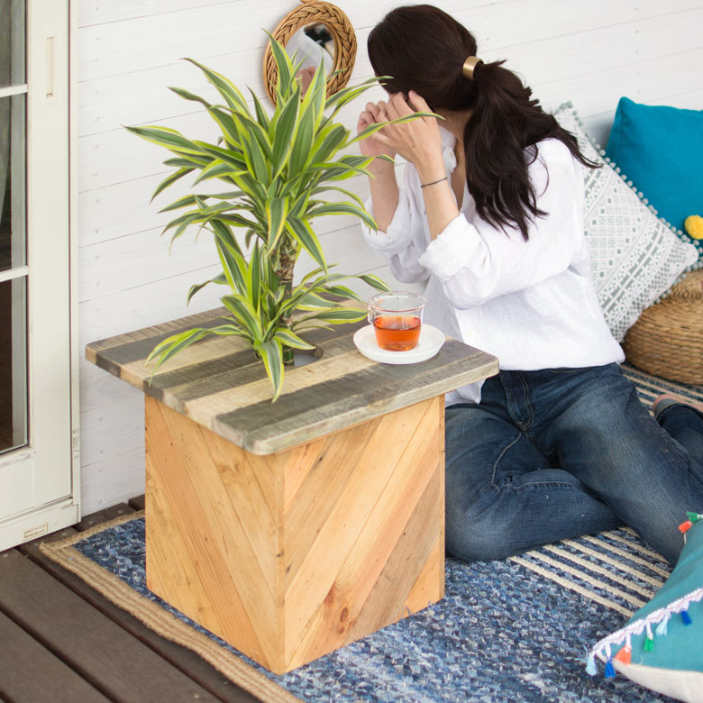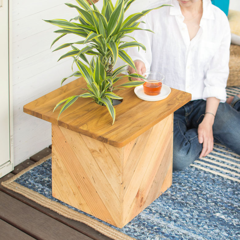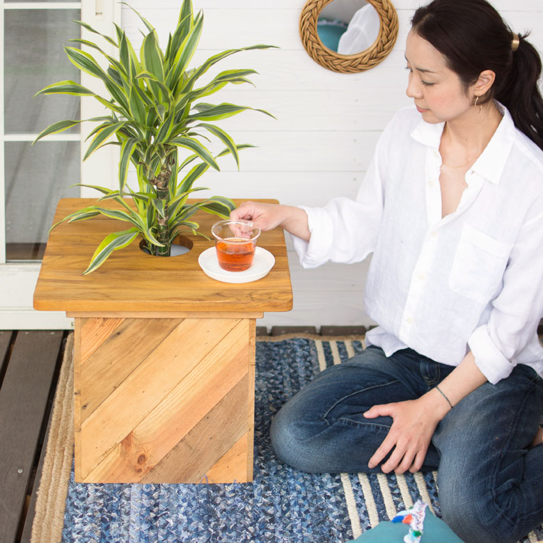 観葉植物を育てつつ、ミニテーブルとしても活躍します。