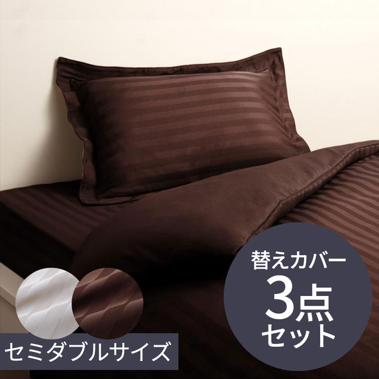 ベッド用カバー3点セット ホテル仕様 ベッドシーツ 寝具 シングルベッド用 布団カバー3点セット ストライプサテン 掛け布団カバー ボックスシーツ 枕カバー ベッドタイプ [99002-wh 99002-br]【 綿×ポリエステル カバーリング 洗い替え用 内ズレ防止ヒモ付き ファスナー 全周ゴム仕様 おしゃれ 】