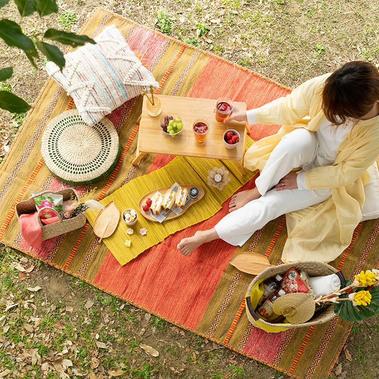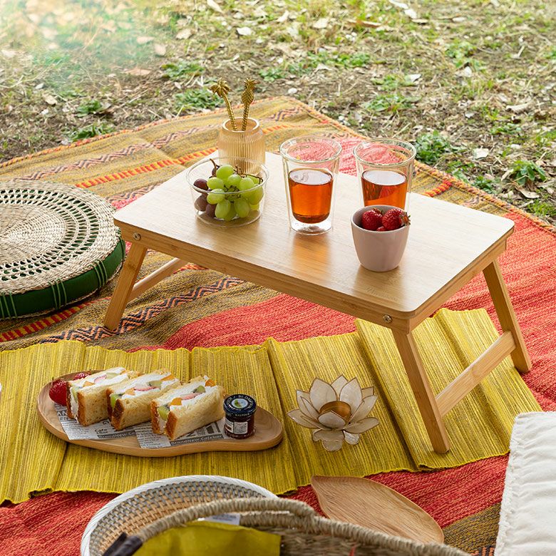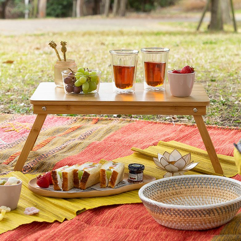 天板も脚も天然素材で、おしゃれなピクニックにぴったり!