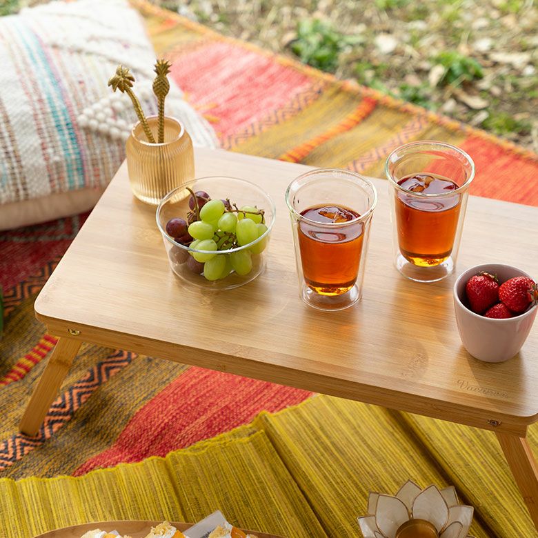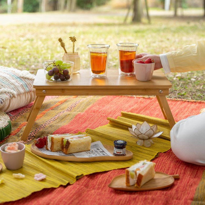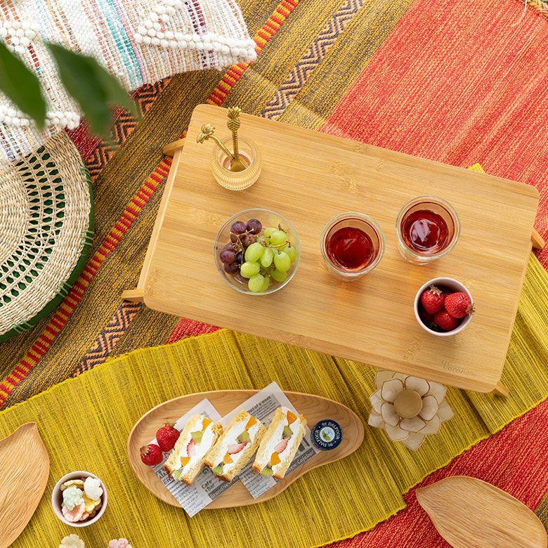 温かみのある風合いが可愛らしい、バンブー製の折り畳みテーブル