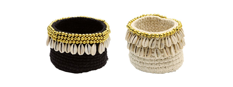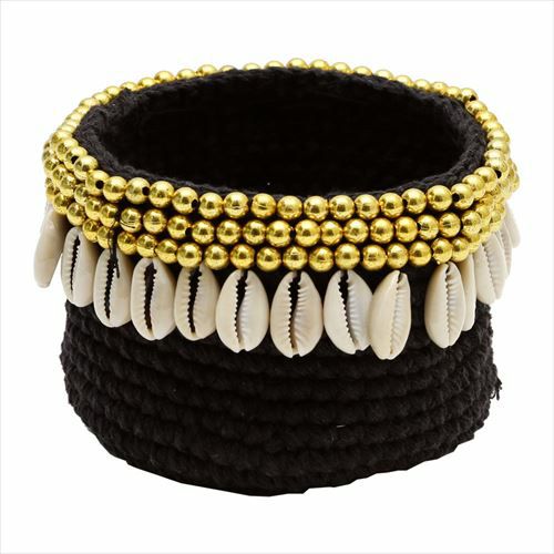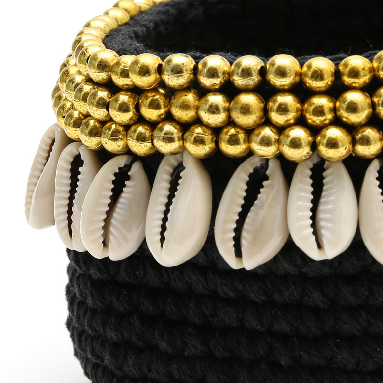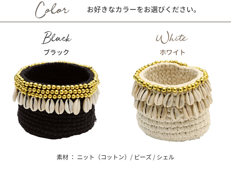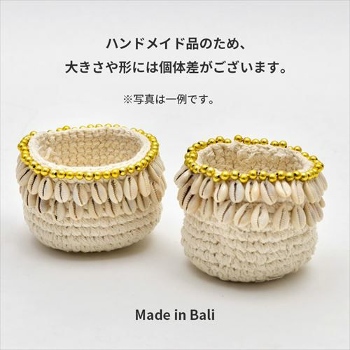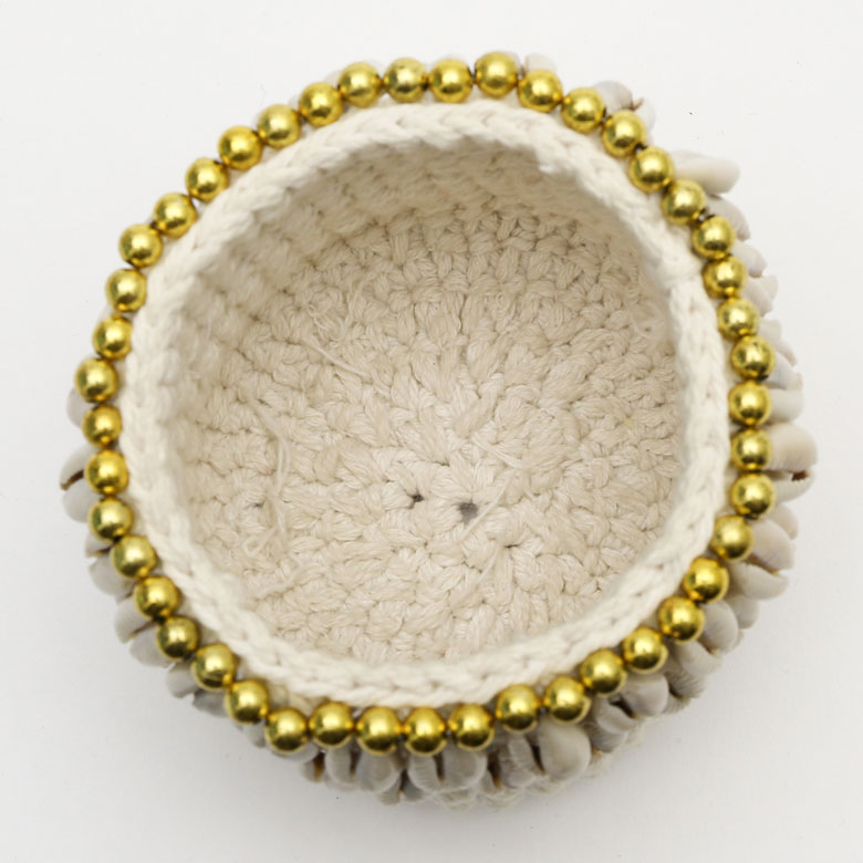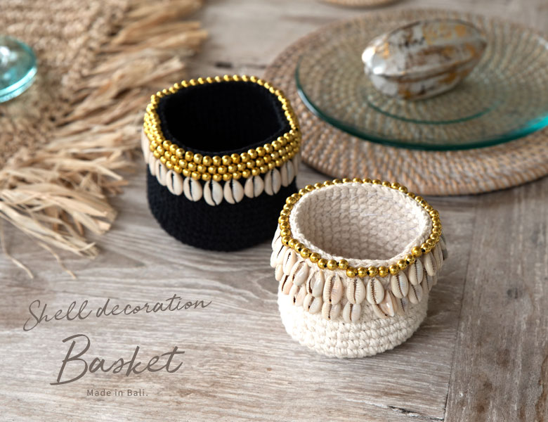バスケットのフチを囲うように、シェルとビーズがあしらわれています。 |