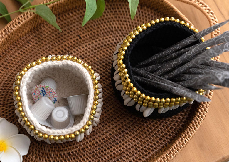 ハンドメイドで編まれたバリ島生まれのミニバスケット。